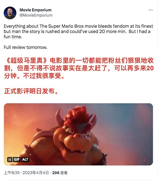 正式媒体评价将于明日北美公映解禁。