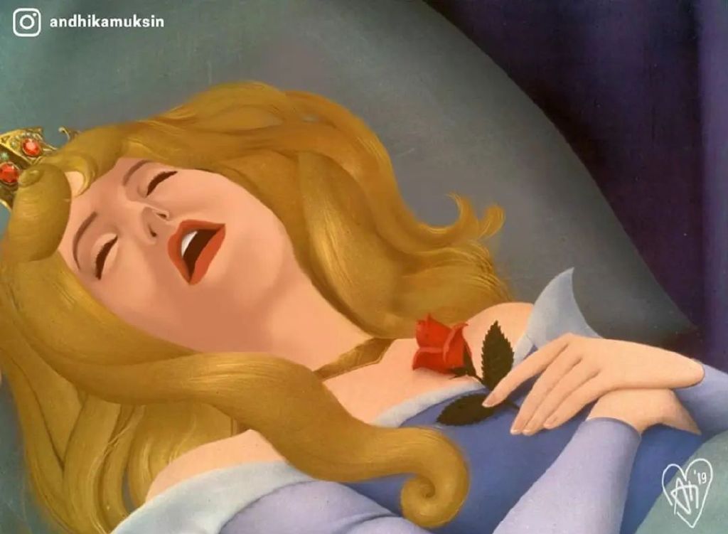 在这位插画家的笔下,我们熟悉的迪士尼公主来到了我们生活的时代,她们也有很多的烦恼,比如因失恋哭到花妆,因热爱美食胖出双下巴,就连白雪公主在王子面前醒来时,也是睡眼惺忪蓬头垢面……