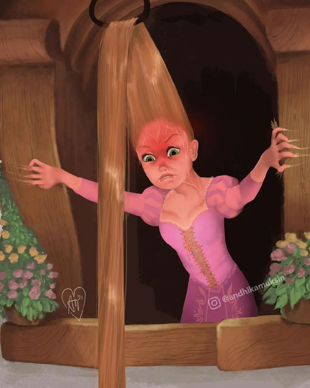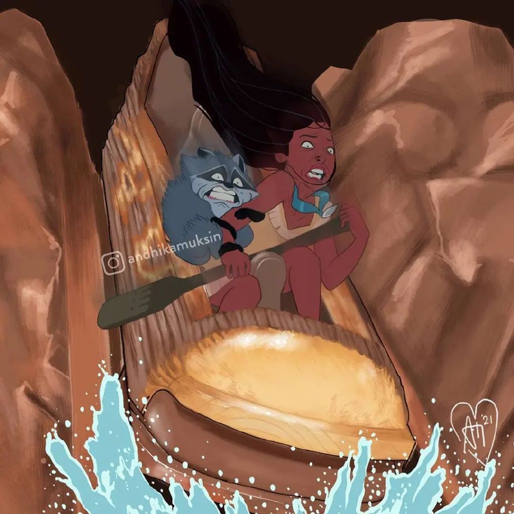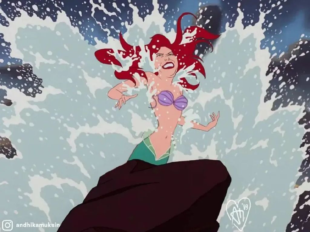 试想一下,如果每一个女孩都像迪士尼公主那样,永远保持美丽、优雅的姿态,那这个世界也太单调了。难道,美女卸下伪装后,依然能够完美如初吗?印度一位插画家安迪卡·穆克辛就用一系列插画作品,尝试想象了一下,假如迪士尼公主们不再顾及形象,露出真实本性,会是什么样子。