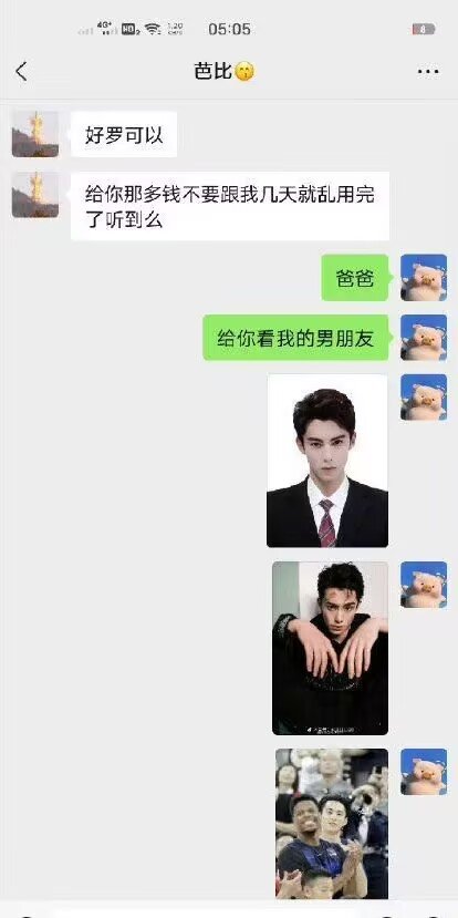 一位网友晒出了自己和爸爸的聊天记录,爸爸正在嘱咐她不要把那么多钱几天就乱用完了,结果这位网友啪啪甩出三张王鹤棣的照片。
