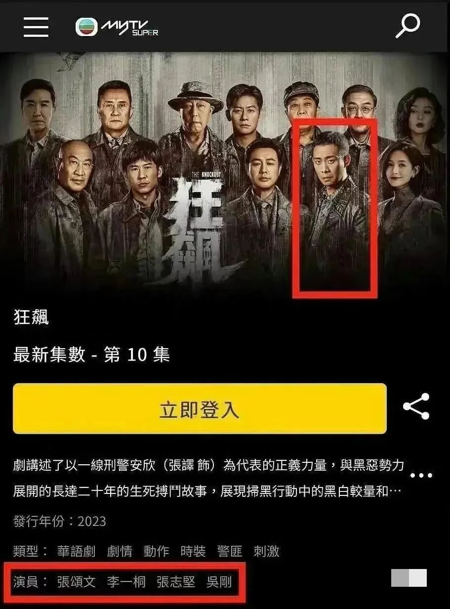 TVB已经引进了《狂飙》,不过海报和演员表引起很大争议,占C位的成了张颂文,演员表还漏了张译的名字。