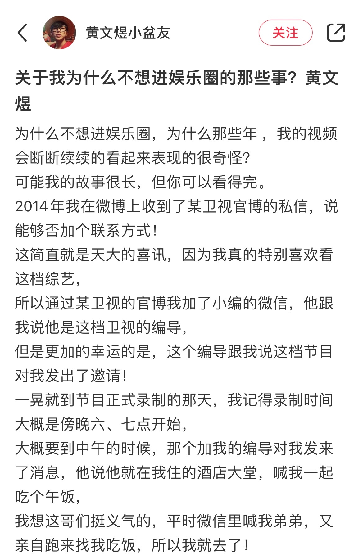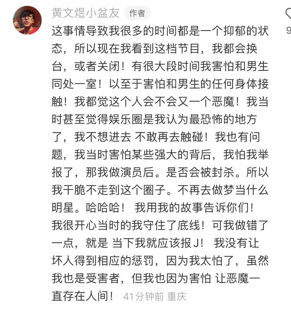 omg #黄文煜自曝九年前被某卫视编导猥亵# 才不想进娱乐圈。