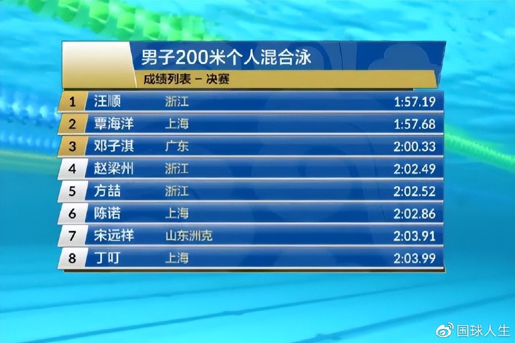 汪顺的短期目标是杭州亚运会,作为浙江游泳的新门面,他要在家门口力争冠军。不仅汪顺,这次复出参赛的叶诗文、傅园慧等老将都瞄准杭州亚运会,因为热爱和责任让老将们坚持努力。还有像覃海洋这样的中生代选手也在默默努力,这一次比赛就让我们感受到了他的进步,200米个人混合泳游出1分57秒68,而在男子100米蛙泳预赛中,覃海洋游出了58秒94,创造个人新纪录,也让泳迷对他有了更多期待!