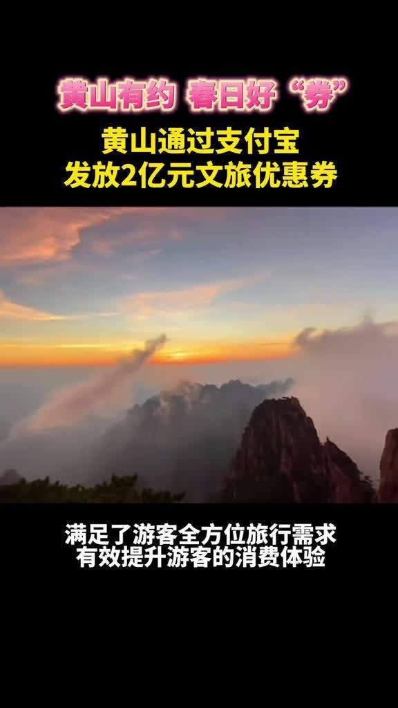 近日,黄山旅游发布信息称,为进一步激发文旅消费潜力、推动消费市场加速回暖,为广大游客带来出行福利,黄山旅游官方平台将开展“黄山有约,春日好‘券’”促消费专项活动,于3月10日上午10时面向全国游客发放2亿元文旅优惠券。