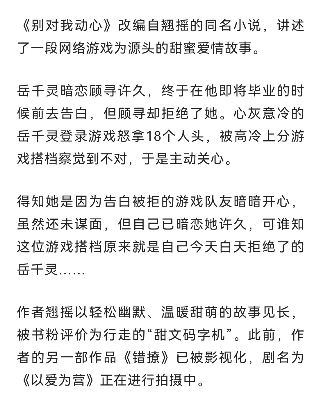 改编自翘摇同名小说,上海拾上影视出品,24集青春爱情网剧《别对我动心》2月苏州开机!