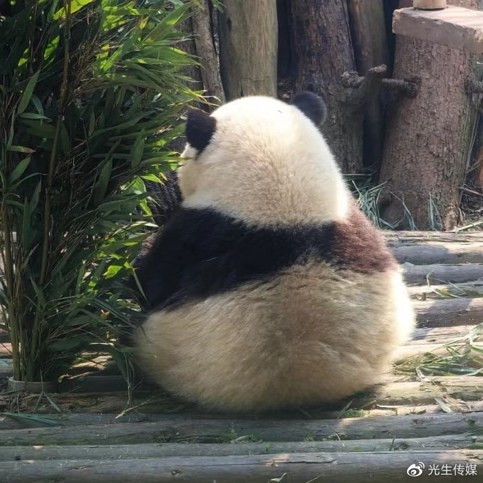 不过这样的特点增加了它的可爱度,使它成为了基地里最有辨识度的一只熊猫。有网友形容花花坐下来的时候就像一个三角饭团,是名副其实的“圆滚滚”。