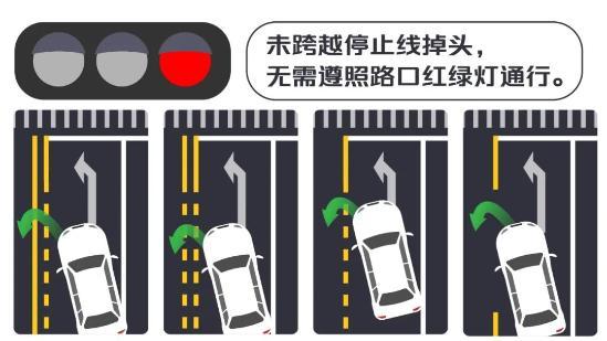 在有预留掉头虚线的路口时,则必须从预留虚线处、预留口掉头。在虚线掉头时,因为没有跨越停止线,所以在掉头时不需要遵照红绿灯指示。