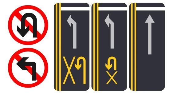 在有禁止左转、禁止掉头的指示牌及车道标识的路段禁止掉头。在zui左侧的直行车道,即使没有任何禁止标识,同样也不允许掉头,这点经常犯错,车友们要注意哦。