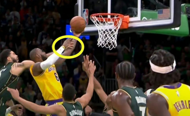 在5连客的第一场比赛,湖人加时赛不敌凯尔特人,第四节的压哨时刻,詹姆斯准备上篮绝杀,被塔图姆打胳膊犯规,但裁判拒绝被犯规,詹姆斯非常不满、双膝跪地,当时詹姆斯用的确实是自己的左手。如今大战尼克斯,双方再度鏖战到了加时赛,詹姆斯在还剩下19.4秒的时候突破上篮用左手打进,分差拉大到6分,率领湖人拿下比赛的胜利。