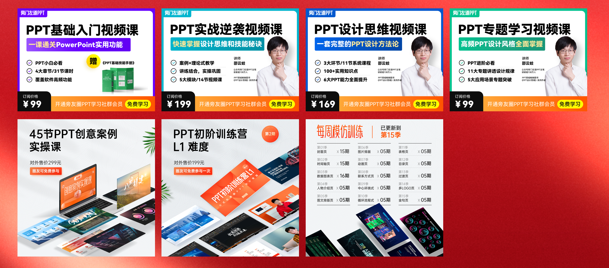 如果你想要学好PPT,送你一份PPT大礼包!包含2节训练营,4门PPT课程。一个45节PPT设计实操课等等: