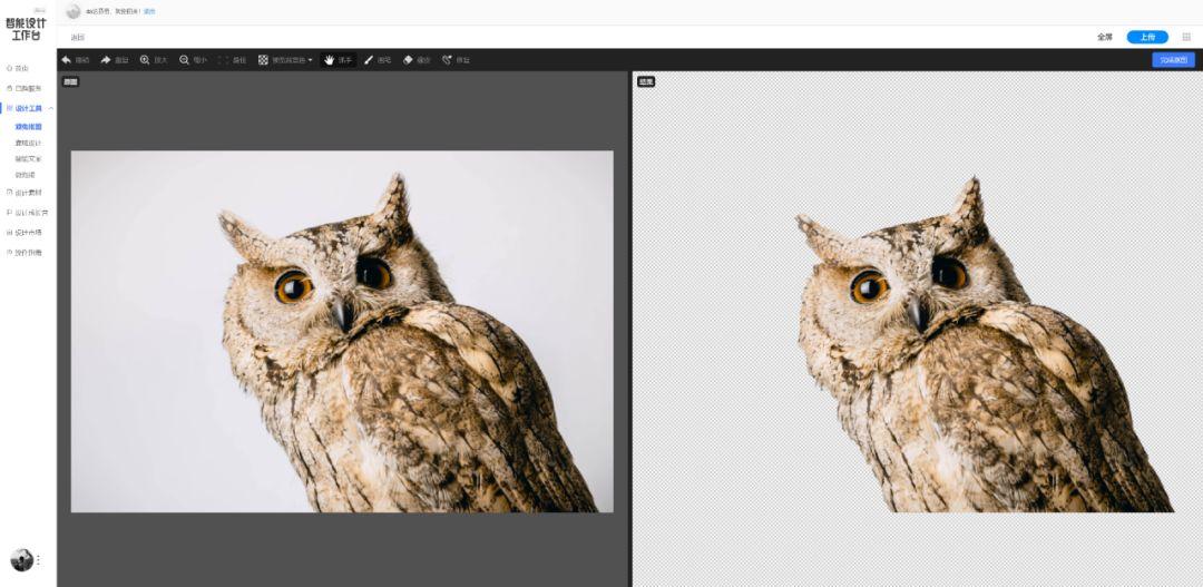 上传后,点击一键智能抠图,就开始处理了,大概需要等待5秒左右就能自动完成: