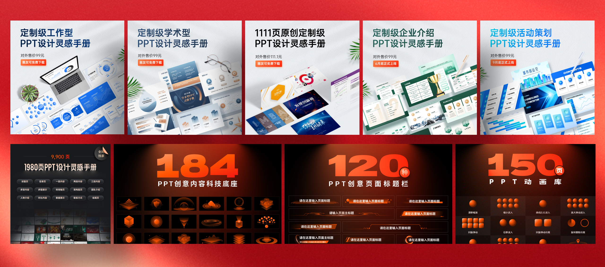以及9份超1.3万页的PPT设计灵感库,学术型,党政风,活动策划,公司介绍,动画库等等全部包含:
