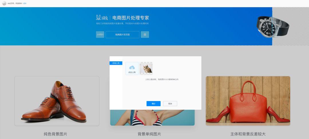 我们把它上传到抠图工具中,这里可以看到,最大支持20张图片同时处理,可以说很强大了: