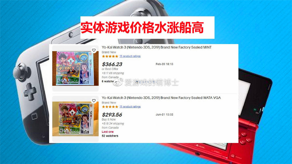 另外,虽然Wii U和3DS的游戏绝大多数都有实体版本在市面上流通,但是与数字版本相比,入手和保存的难度高了很多,尤其是在任天堂发表了上述公告后,Wii U和3DS实体游戏的价格开始水涨船高,让游戏收藏家和爱好者们难以接受。